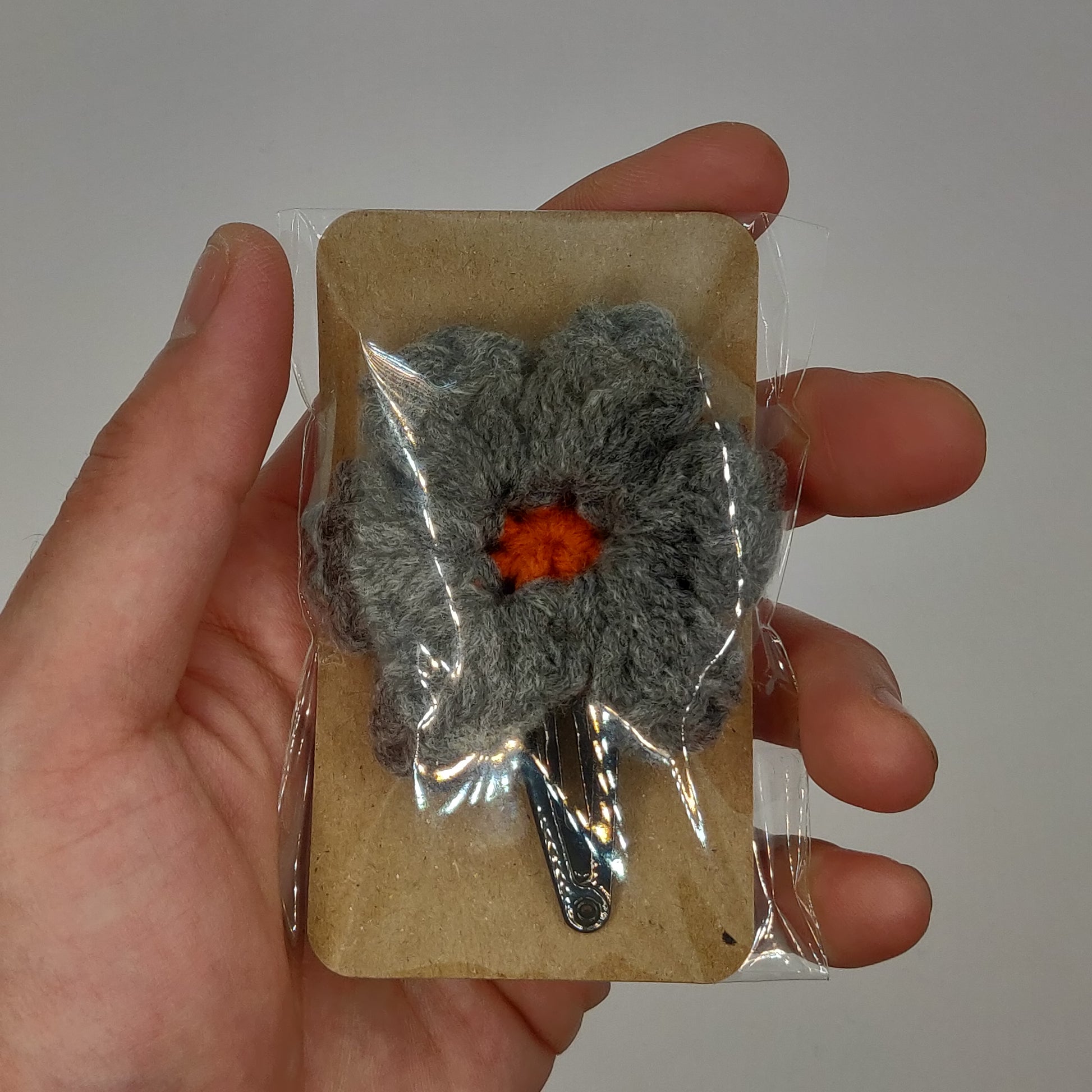 Grey - Orange Flower Barrette