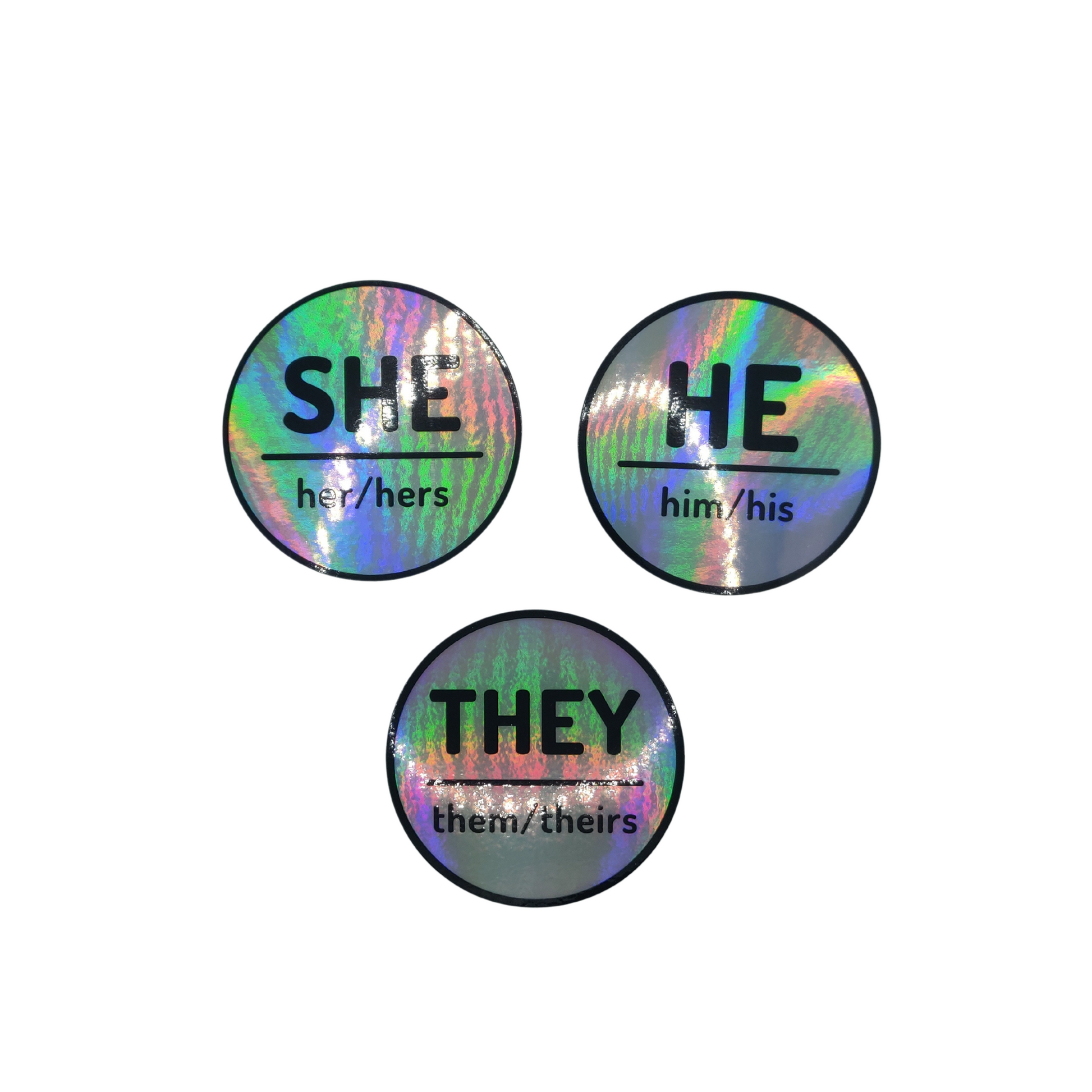 Holographic 3" Pronoun Sticker - They She He