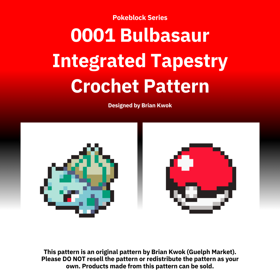 Pokemon Block Series: 0001 Bulbasaur Integrated Tapestry Crochet Pattern [Digital Pattern]