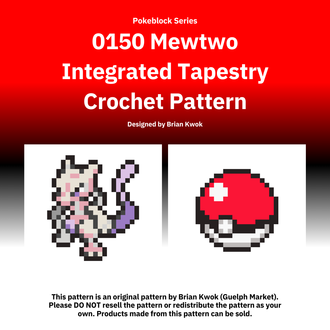 Pokemon Block Series: 0150 Mewtwo Integrated Tapestry Crochet Pattern [Digital Pattern]